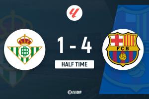 體育資訊12月7日訊 北京時間1:30,西甲第15輪皇家貝蒂斯vs巴塞羅那,比賽在塞維利亞奧林匹克體育場打響!上半場,安東尼破門幫助貝蒂斯取得領(lǐng)先,但隨后費(fèi)蘭·托雷斯2分鐘2球?qū)⒈确址闯∨宓吕镏グ偷录傧乱怀?;費(fèi)蘭遠(yuǎn)射破門完成帽子戲法!半場結(jié)束,巴薩暫時4-1領(lǐng)先貝蒂斯。