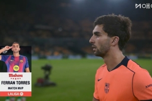 體育資訊12月7日訊 西甲第15輪比賽,巴薩在客場(chǎng)以5-3的比分戰(zhàn)勝貝蒂斯。本場(chǎng)比賽,費(fèi)蘭·托雷斯為紅藍(lán)軍團(tuán)上演帽子戲法,是球隊(duì)取勝的大功臣。賽后,費(fèi)蘭·托雷斯被西甲官方評(píng)為全場(chǎng)最佳球員。