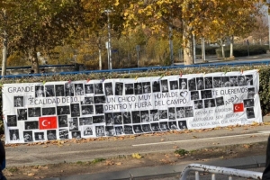 球迷在皇馬訓練場外懸掛橫幅,表達對居萊爾的支持: