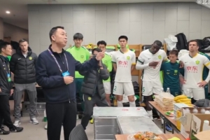 足協(xié)杯決賽賽前,北京國安足球俱樂部董事長周金輝來到球隊更衣室,為球隊送上鼓勵。