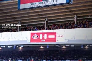 本場比賽桑德蘭主場觀眾席上分的比分牌上并未展示出紐卡的隊(duì)徽,而僅僅是以英文visitors(客隊(duì))替代。