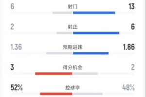 全場(chǎng)比賽數(shù)據(jù)如下: