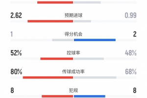 預(yù)期進(jìn)球:2.62比0.99