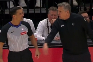 比賽最后24秒,森林狼主教練芬奇在場(chǎng)邊大罵裁判,他沖裁判吼道:“閉嘴,你剛才漏了兩次吹罰,你TM心知肚明,你TM明明知道(犯規(guī)了)!”