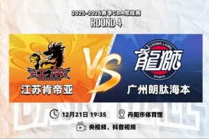 12月21日19:35,2025-26賽季CBA常規(guī)賽第四輪,江蘇肯帝亞將繼續(xù)坐鎮(zhèn)主場丹陽市體育館迎戰(zhàn)廣州朗肽海本。