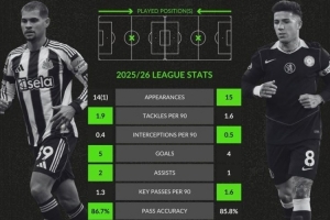 體育資訊12月20日訊 切爾西即將在英超焦點戰(zhàn)客戰(zhàn)紐卡,whoscored也對比了兩隊中場核心本賽季聯(lián)賽關(guān)鍵數(shù)據(jù)。