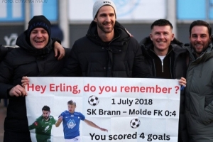 拉德林格提到了2018年哈蘭德身披莫爾德球衣對陣布蘭時,對他上演大四喜的往事。