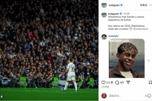居萊爾寫道:“我們將以更強(qiáng)姿態(tài)回歸,并且永不停止奮斗。2026年見,馬德里主義者們。祝大家新年快樂!”