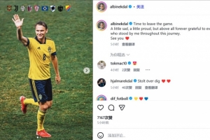 埃克達(dá)爾寫道:“是時(shí)候告別這場(chǎng)比賽了。有一點(diǎn)難過,有一點(diǎn)自豪,但最重要的是永遠(yuǎn)感激在這段旅程中一直支持我的每一個(gè)人。再見??”