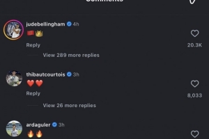 貝林厄姆、庫(kù)爾圖瓦、居萊爾等皇馬隊(duì)友為迪亞斯留言點(diǎn)贊。
