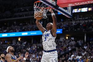 上半場(chǎng),魔術(shù)前鋒班凱羅出場(chǎng)18分鐘12投5中,三分2中0、罰球4中4拿到14分8籃板4助攻。