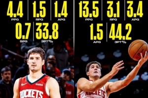 隨著上場時間的增加,他的自信心也在增強(qiáng),現(xiàn)在他在火箭隊的表現(xiàn)已經(jīng)翻倍。
