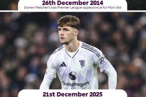 杰克·弗萊徹的父親是曼聯(lián)名宿達倫·弗萊徹?,F(xiàn)年41歲達倫·弗萊徹生涯共為曼聯(lián)出場342次,他最后一次代表曼聯(lián)在英超出場是2014年12月26日,11年后他的兒子完成了傳承。