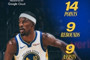 賽后勇士發(fā)布最佳球員數(shù)據(jù)海報,巴特勒當(dāng)選。