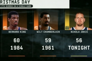 56分是NBA歷史圣誕大戰(zhàn)第三高分,僅次于伯納德·金(60分)和張伯倫(59分)。