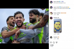 他也在賽后通過社媒曬出自己被隊友簇?fù)淼膽c祝照,并配文:“節(jié)禮日之戰(zhàn),感謝全隊和球迷們!”
