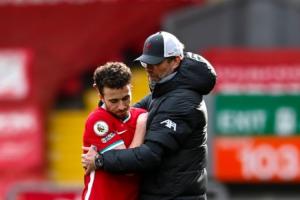 這在我執(zhí)教俱樂部的整個時期,甚至在我離開后,都一直持續(xù)著。在最重大的時刻,當(dāng)我們最需要他的時候,他一次又一次地挺身而出。 今年四月,我在客廳里慶祝了他對陣埃弗頓的制勝球,但我歡呼的樣子就像我是Kop看臺上的一個支持者。一個決定冠軍歸屬的時刻。如今,這已成為一個不朽的時刻,與俱樂部輝煌歷史上一些最重要的時刻并列。 我總是說:作為一名進(jìn)攻球員,你也必須在防守端努力,而迪奧戈在這方面做得令人難以置信地好。他追逐一切。他為每個球權(quán)而戰(zhàn)。他瘋狂地壓迫逼搶。然后下一秒,他就會給你一個微笑,或是一次握手,或在走廊里開個小玩笑。