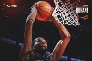 賽后,火箭官方曬圖,發(fā)布杜蘭特本場30+4+7的數(shù)據(jù)海報。