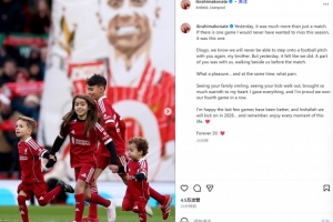 “迪奧戈,我知道我們?cè)僖矡o(wú)法和你一起踏上足球場(chǎng)了,我的兄弟。但昨天的感覺(jué)就像我們又在一起并肩作戰(zhàn)一般。你的一部分與我們同在,賽前就陪伴在我們身邊。”