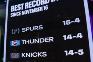 馬刺主場(chǎng)迎戰(zhàn)騎士,轉(zhuǎn)播方曬出近一個(gè)半月(11月16日至今)的戰(zhàn)績(jī)排名:
