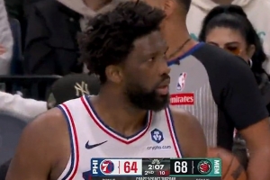 GIF-恩比德大帽韋爾斯,還倒地救球