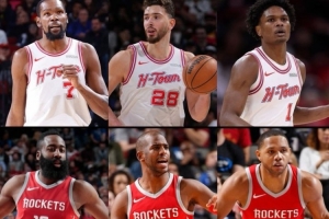 據(jù)統(tǒng)計,這是火箭隊史第3次三人賽季場均得分18+。