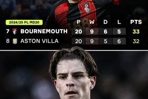 據(jù)統(tǒng)計(jì),本賽季伯恩茅斯在20輪比賽過后積分只有23分,位居聯(lián)賽第15位,而上賽季同期球隊(duì)在20輪過后積33分,高居第7位。