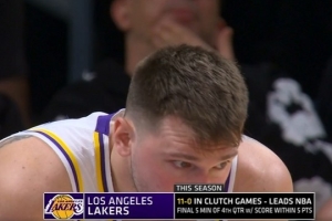 本賽季出現(xiàn)關(guān)鍵時刻(最后5分鐘分差5分以內(nèi))的比賽,湖人此前11勝0負,今天再度進入關(guān)鍵時刻。