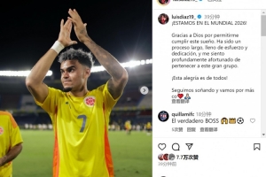 迪亞斯社媒曬出比賽照片,并寫道:“我們晉級2026年世界杯!感謝上帝讓我實現(xiàn)這個夢想。這是一段漫長而充滿努力與奉獻的歷程,能成為這支偉大球隊的一員,我深感榮幸。這份喜悅屬于所有人!