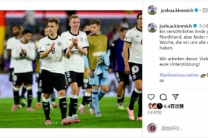 基米希社媒曬出賽后謝場(chǎng)的照片,并寫(xiě)道:“對(duì)陣北愛(ài)爾蘭的比賽取得了不錯(cuò)的結(jié)果,但遺憾的是,這樣的一周并不是我們所有人期待的。我們正在努力。非常感謝大家的支持!”