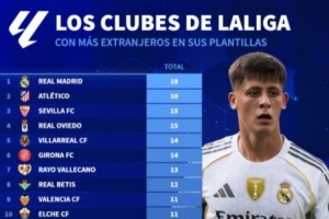 體育資訊9月16日訊 近年來,皇馬引進了多名外籍球員,這讓球隊中外籍球員比例不斷上升。根據(jù)德國轉(zhuǎn)會市場的統(tǒng)計,皇馬陣中目前有18名外籍球員,占比高達72%(18/25),是西甲中外籍球員最多的俱樂部。