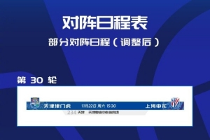 體育資訊9月17日訊 中超官方消息,中超第30輪天津津門虎vs上海申花比賽場(chǎng)地調(diào)整為天津奧體中心體育場(chǎng)。