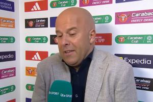 體育資訊09月24日訊 聯(lián)賽杯第3輪,利物浦2-1險勝南安普頓,?;倏嗽诘?5分鐘進球后脫衣慶祝,吃到第二張黃牌被罰下。賽后主帥斯洛特接受ITV的采訪時,談到了球員的這一行為。