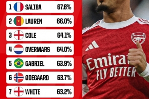 體育資訊9月30日訊 薩利巴與阿森納續(xù)約在即,OPTA也盤點(diǎn)了阿森納隊(duì)史球員在英超勝率榜(至少100次出場(chǎng)),其中薩利巴居首,具體如下: