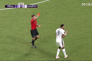 體育資訊09月30日訊 亞冠精英聯(lián)賽東亞區(qū)第2輪,廣島三箭vs上海海港第90分鐘,海港前鋒古斯塔沃拼搶中犯規(guī),主裁判果斷直紅將其罰下,VAR核實后維持了原判。