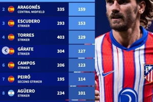 體育資訊10月1日訊 在本輪歐冠馬競5-1擊敗法蘭克福的比賽中,格列茲曼打進(jìn)個(gè)人馬競生涯第200球。德轉(zhuǎn)也盤點(diǎn)了馬競隊(duì)史射手榜,其中格列茲曼居首,具體如下:
