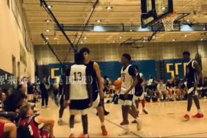 當時是Veritas Academy的進攻回合,張博源和對手(白隊13號球員)對位,兩人胳膊糾纏在一起,隨后發(fā)生口角,還升級為肢體沖突,張博源被沖上來的隊友護住,他的隊友們將對手推開,更多人加入沖突,導致比賽停止,教練也參與了進來。