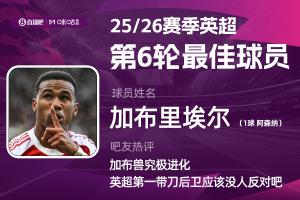 2025-2026賽季英超火熱進行中,體育資訊和咪咕體育聯(lián)合發(fā)起每輪英超最佳球員評選活動!第六輪評選結果結出爐,加布里埃爾頭球絕殺,幫助阿森納2-1戰(zhàn)勝紐卡斯爾,獲得吧友8萬票的支持,力壓哈蘭德當選 【體育資訊X咪咕體育英超第6輪最佳球員】!