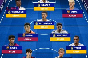 前鋒:維尼修斯-1.5億歐,姆巴佩-1.8億歐,亞馬爾-2億歐