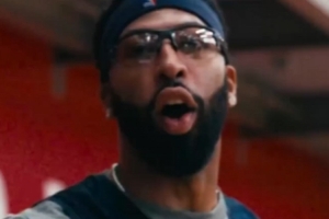 視頻當(dāng)中,濃眉戴著護(hù)目鏡底角三分一發(fā)入魂,場(chǎng)邊的歐文搞怪互動(dòng)。