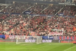 此役奧薩蘇納球迷組織Indar Gorri向球場內(nèi)投擲網(wǎng)球,導致比賽中斷,并展示抗議以色列的橫幅。