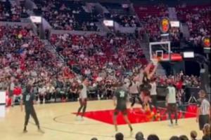 GIF-楊瀚森擋拆順下,面對(duì)克林根強(qiáng)勢(shì)高打板打三分