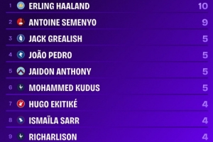 以下為本賽季英超直接參與進(jìn)球數(shù)最高球員top10: