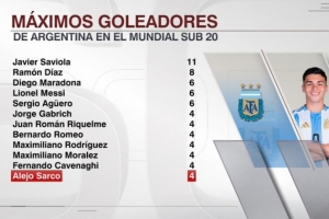體育資訊10月9日訊 ESPN統(tǒng)計了阿根廷球員在世青賽歷史上的進球數量,并列出世青賽歷史阿根廷球員射手榜,薩維奧拉11球斷層居首,馬拉多納、梅西、阿圭羅6球,薩爾科本屆賽事打進4球上榜。