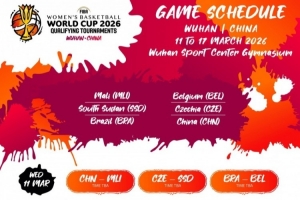 2026女籃世界杯預(yù)選賽武漢賽區(qū)日程出爐,比賽屆時(shí)將在武漢體育中心體育館進(jìn)行,每個(gè)比賽日三場(chǎng)比賽。中國(guó)隊(duì)日程安排如下(開(kāi)球時(shí)間待定):