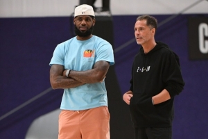 這是第一個事,第二個事就更直接了,詹姆斯的合同是26年(明年)到期,但是今年有球員選項,是吧?按說這時候球隊要提前跟詹姆斯談續(xù)約了,歷史上每一回球隊都是這么來的,是吧?他過去跟騎士談1+1,+1完了一年騎士就得趕緊找人家,求爺告奶奶,咱趕緊執(zhí)行,要不然咱提前再簽一長的,比如+5呢?再簽一長的+3、+5,您看看怎么著?就是趕緊找他。每一回都是合同早就準備好了,按數(shù)最大的填,您就直接簽字,是吧?大哥,您來,您看咱們怎么簽?求求您了,您跟我們續(xù)吧,都是這樣啊。可是這回,今年夏天湖人都沒跟詹姆斯談續(xù)約這事。湖人連續(xù)約的合同都沒拿出來,都沒找你。