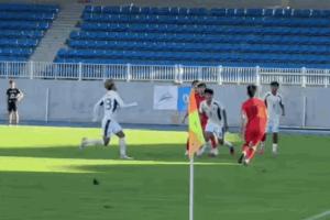 體育資訊10月10日訊 國足U22熱身賽3-1擊敗泰國U23。比賽中,王鈺棟遭遇對手飛踹犯規(guī)。