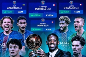 體育資訊10月10日訊 德轉(zhuǎn)更新了法甲球員身價,其中巴黎多人身價上漲,具體如下: