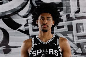 上半場(chǎng)比賽,馬刺新科榜眼發(fā)揮不錯(cuò),不僅有沖擊力且外線能把握住,還能控場(chǎng)送出漂亮助攻。