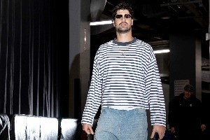 楊瀚森白色連帽衫套裝清爽干練,霍勒迪也是棕色套裝,阿夫迪亞居家風(fēng)搭配黑超,格蘭特上衣印有宮崎駿動(dòng)畫(huà)《千與千尋》。